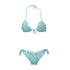 Bikini con top a triangolo e slip con dettagli frou frou. Laccetti laterali regolabili e tessuto in lycra elasticizzata, leggero e traspirante. Per un’estate vivace e spensierata. Composizione: 90% PES, 10% Elastan