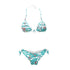 Bikini con top a triangolo e slip con dettagli frou frou. Laccetti laterali regolabili e tessuto in lycra elasticizzata, leggero e traspirante. Per un’estate vivace e spensierata. Composizione: 90% PES, 10% Elastan