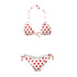 Bikini con top a triangolo e slip con dettagli frou frou. Laccetti laterali regolabili e tessuto in lycra elasticizzata, leggero e traspirante. Per un’estate vivace e spensierata. Composizione: 90% PES, 10% Elastan