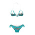 Bikini con top a triangolo e slip con dettagli frou frou. Laccetti laterali regolabili e tessuto in lycra elasticizzata, leggero e traspirante. Per un’estate vivace e spensierata. Composizione: 90% PES, 10% Elastan